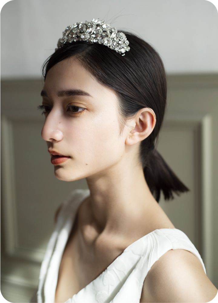 Tóc bob duỗi cúp sẽ giúp cô dâu toát lên vẻ đẹp cá tính, hiện đại và trẻ trung. Bạn chi cần thử sấy phồng mái tóc ngắn kết hợp vòng hoa kết từ kim loại hoặc cài tóc gọn gàng bằng kẹp tóc, để tạo phong cách lãng mạn và độc đáo. Để thêm phần ấn tượng, bạn có thể thử phá cách một chút, để tóc bên kẹp bên buông, sau đó gài hoa hoặc chiếc vương miện nhỏ để làm nổi bật phần tóc cố định nhé.